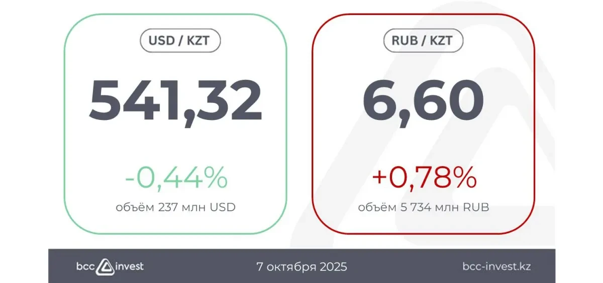 По отношению к рублю курс составил 6,60 ₸ (+0,78%), при этом объём торгов достиг 5 734 млн RUB.