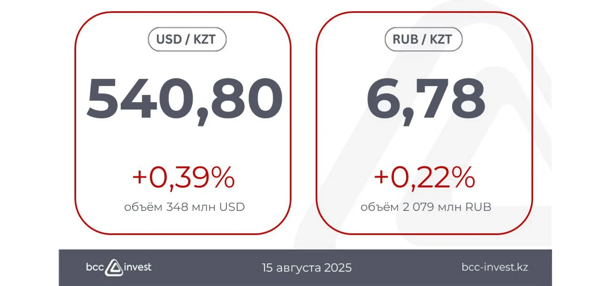 Тенге по итогам торгов в пятницу продемонстрировал ослабление до 540,80, показав изменение +0,39% при увеличенных объёмах операций в 348 млн USD.