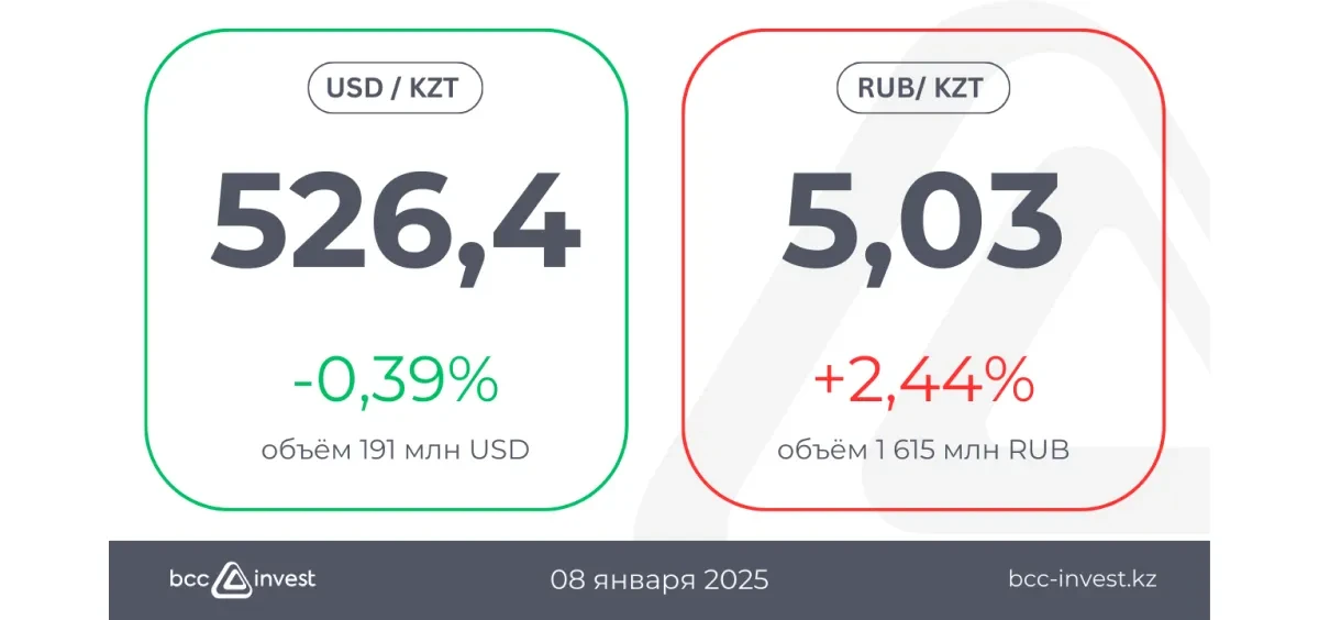 USD/KZT снизился до 526,4 (-0,39%) — курс тенге продемонстрировал небольшое укрепление.