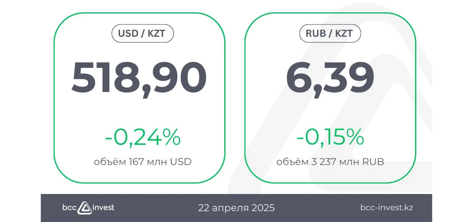 Курс тенге продолжил умеренное укрепление по отношению к доллару, снизившись до 518,90 (-0,24%), объёмы торгов составили 167 млн USD.