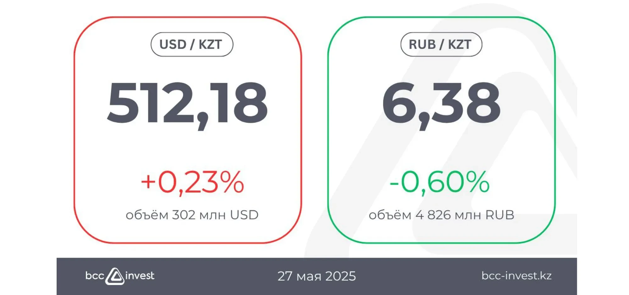 В то же время рубль подешевел на 0,60%, опустившись до отметки 6,38 тенге. Объём торгов составил 4 826 миллионов рублей.