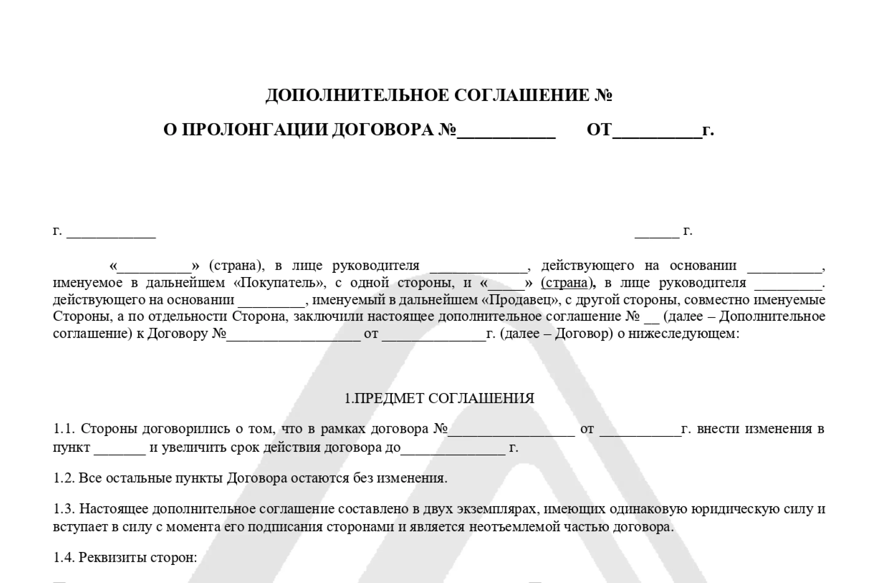 В Казахстане документ готовят на основе типовой формы — скачать образец дополнительного соглашения о продлении срока договора можно на нашем сайте. В ДС обязательно указывают, какого именно контракта касается пролонгация (его номер, дата), прописывают новые сроки действия. Также в шаблоне может быть предусмотрен пункт, в соответствии с которым все другие условия первоначального договора остаются неизменными. ДС подписывается продавцом и покупателем.