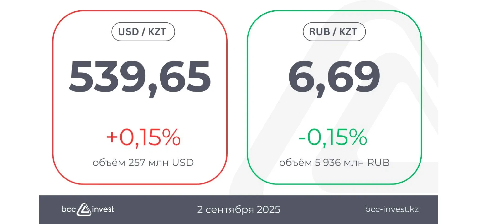 По отношению к рублю курс составил 6,69 ₸ (-0,15%), при этом объём торгов достиг 5 936 млн RUB.