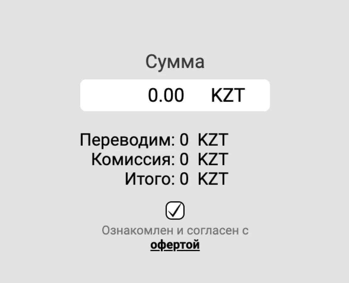 - One transfer: from 1000 ₸ to 300,000 ₸