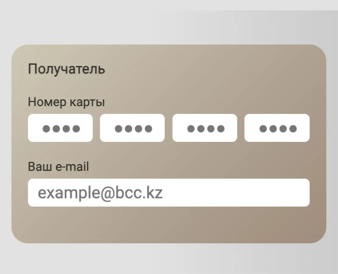 | Transfers to a card in a foreign bank via ATM/Internet/bcc.kz | Personal money - 1% + 250 ₸ Credit money - 4% + 250 ₸ Through other channels: 4% + 250 ₸ |