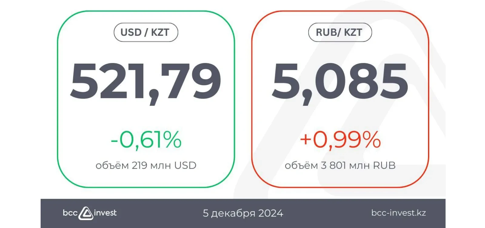 The tenge showed a modest increase of 0.61%. We expect today's strengthening trend to continue with moderate volatility.