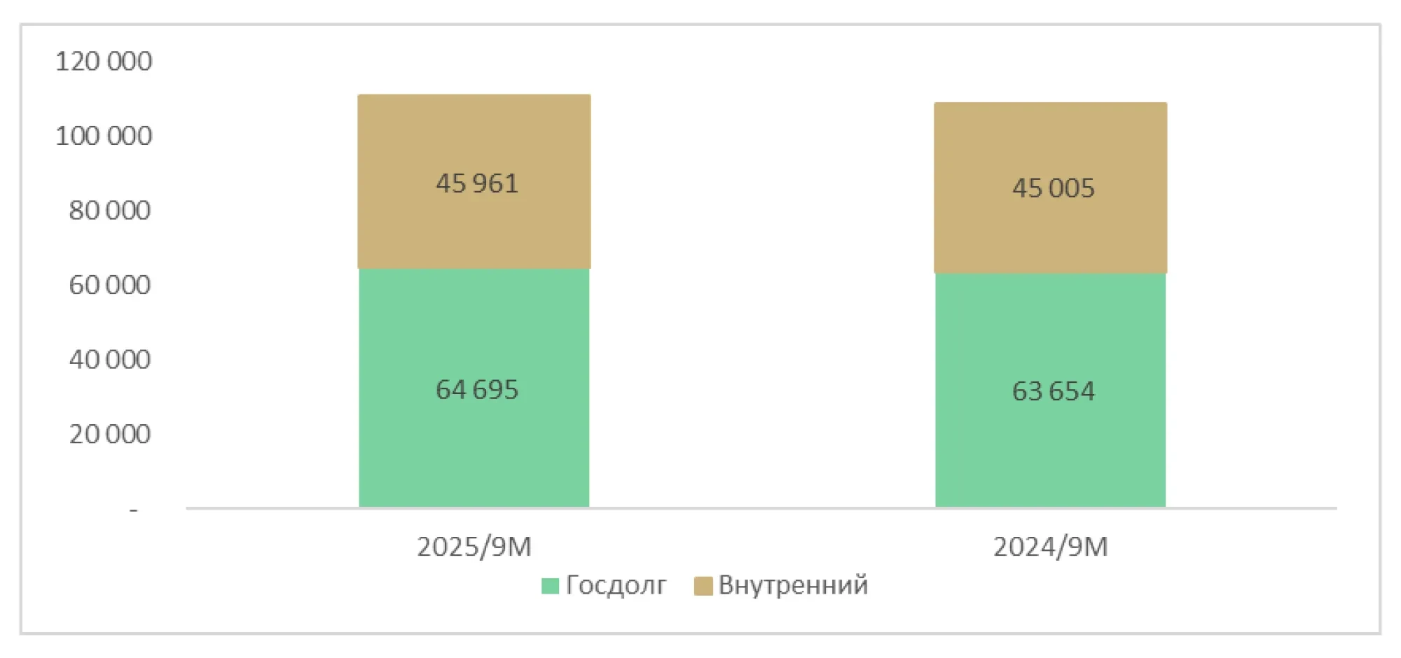 As a result, the overall deficit decreased by 12.1%, while the non-oil deficit remained almost unchanged. Oil-related budget revenues (transfers from the National Fund and export duties on oil) rose by 7.4%, while non-oil revenues grew faster — by 14.3%. This indicates that the share of oil revenues in total government income has slightly decreased, at least over the January–September period.