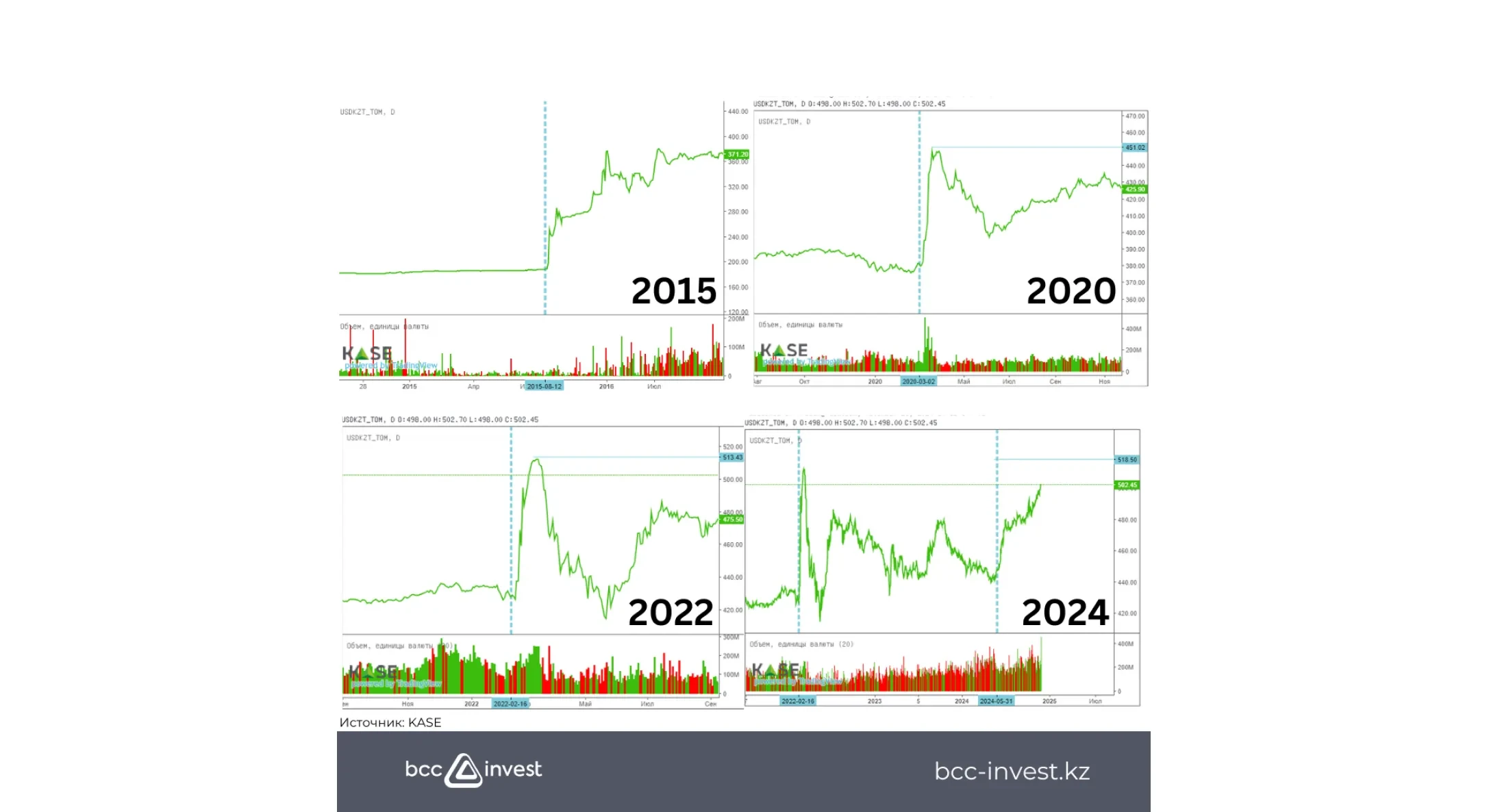 📈 The USD/KZT exchange rate traditionally demonstrates sharp weakening of the tenge during periods of economic or geopolitical shocks, such as COVID-19 pandemic in 2020 or war in Ukraine in 2022.