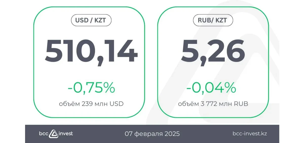 Курс тенге продолжает укрепляться четвёртый день подряд, снизившись на 0,75% до уровня 510,14. Объём торгов составил 239 млн USD.