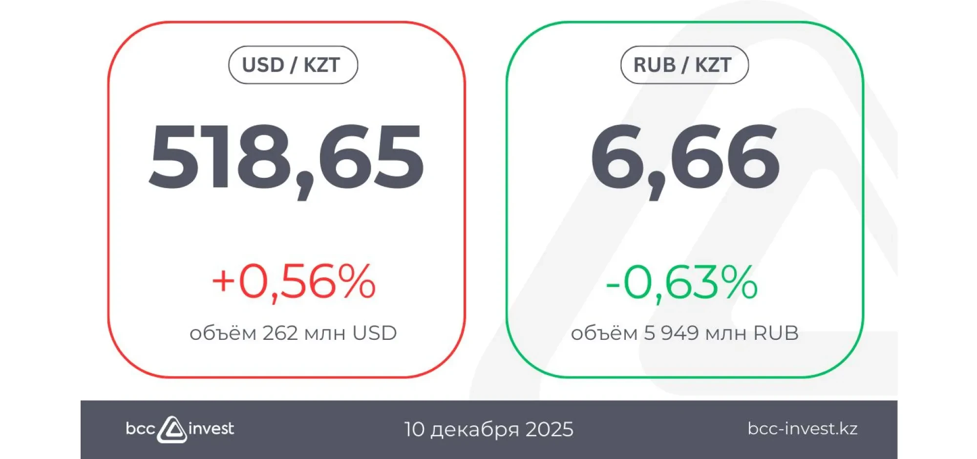По отношению к рублю курс составил 6,66 ₸ (-0,63%), при этом объём торгов достиг 5 949 млн RUB.
