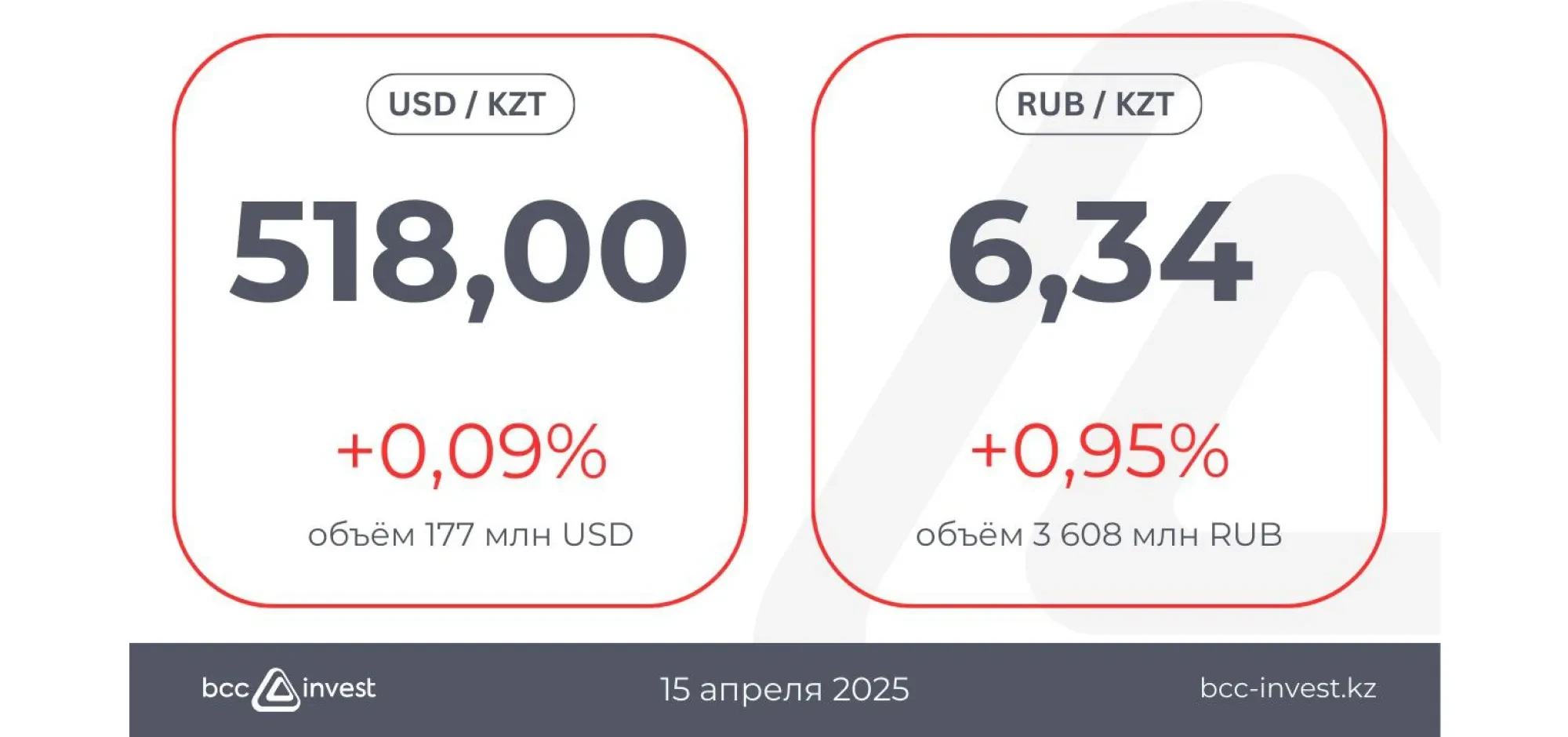 Сегодня тенге показал незначительное ослабление — курс USD/KZT составил 518,00 (+0,09%) при объёме торгов 177 млн USD.