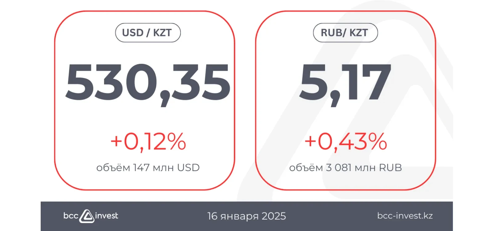 Аналитика курсов валют от BCC Invest на 16 января 2025 года