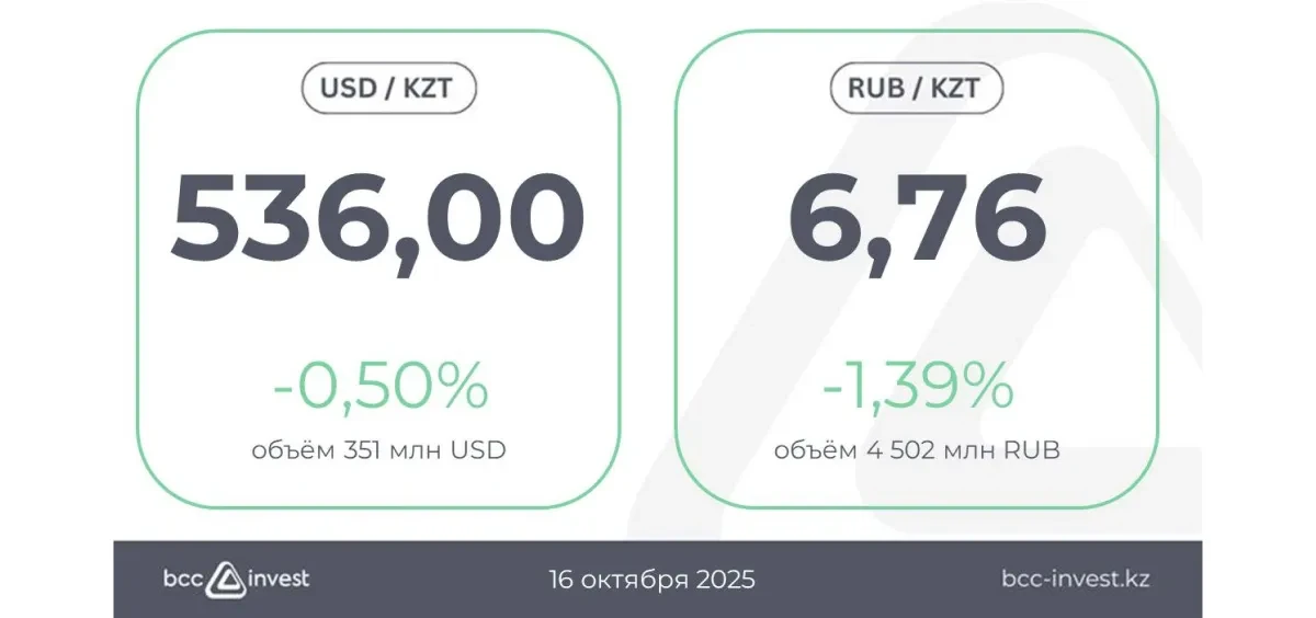 По отношению к рублю курс составил 6,76 ₸ (-1,39%), при этом объём торгов достиг 4 502 млн RUB.