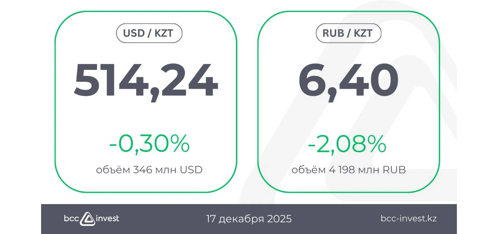 По отношению к рублю курс составил 6,40 ₸ (-2,08%), при этом объём торгов достиг 4 198 млн RUB.