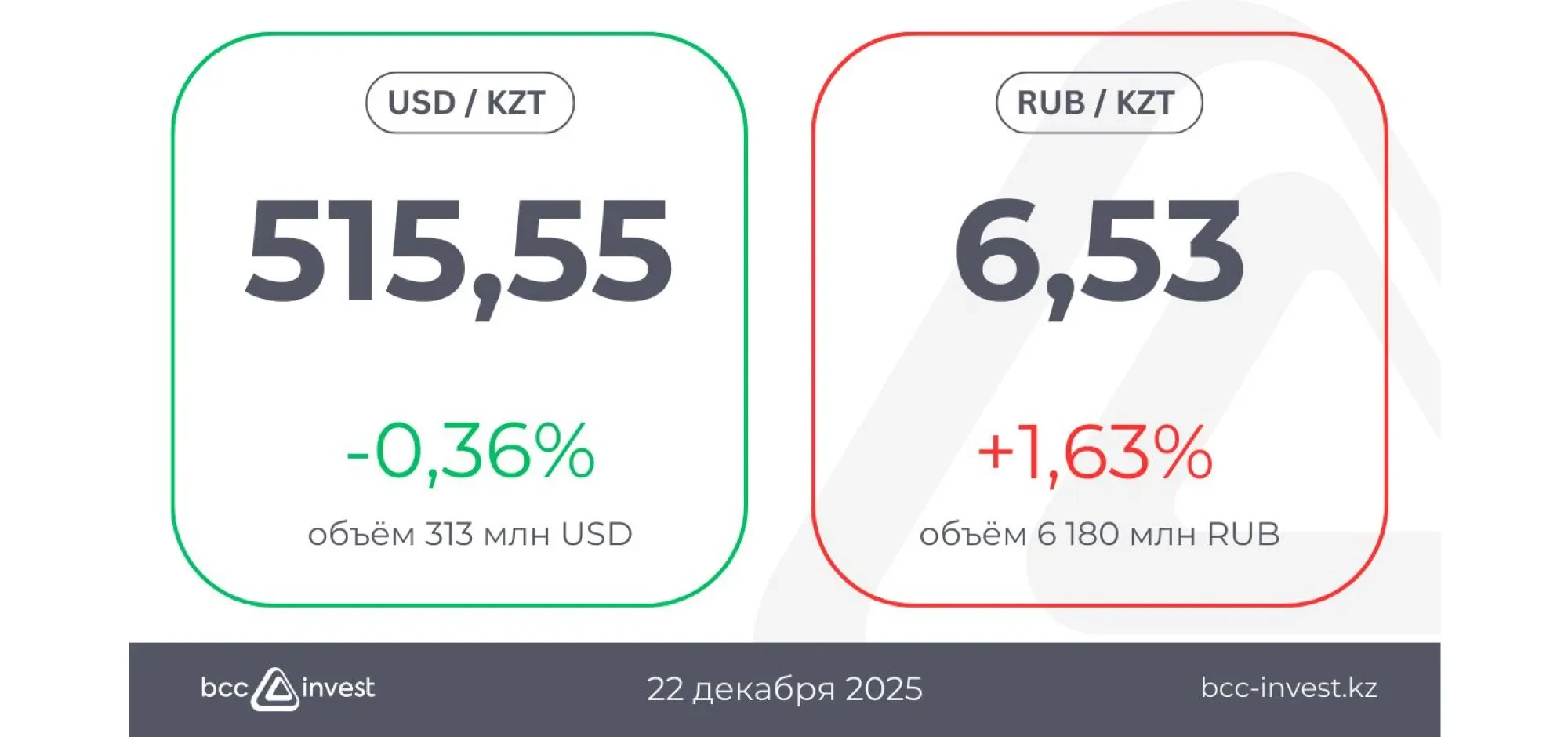 По отношению к рублю курс составил 6,53 ₸ (+1,63%), при этом объём торгов достиг 6 180 млн RUB.