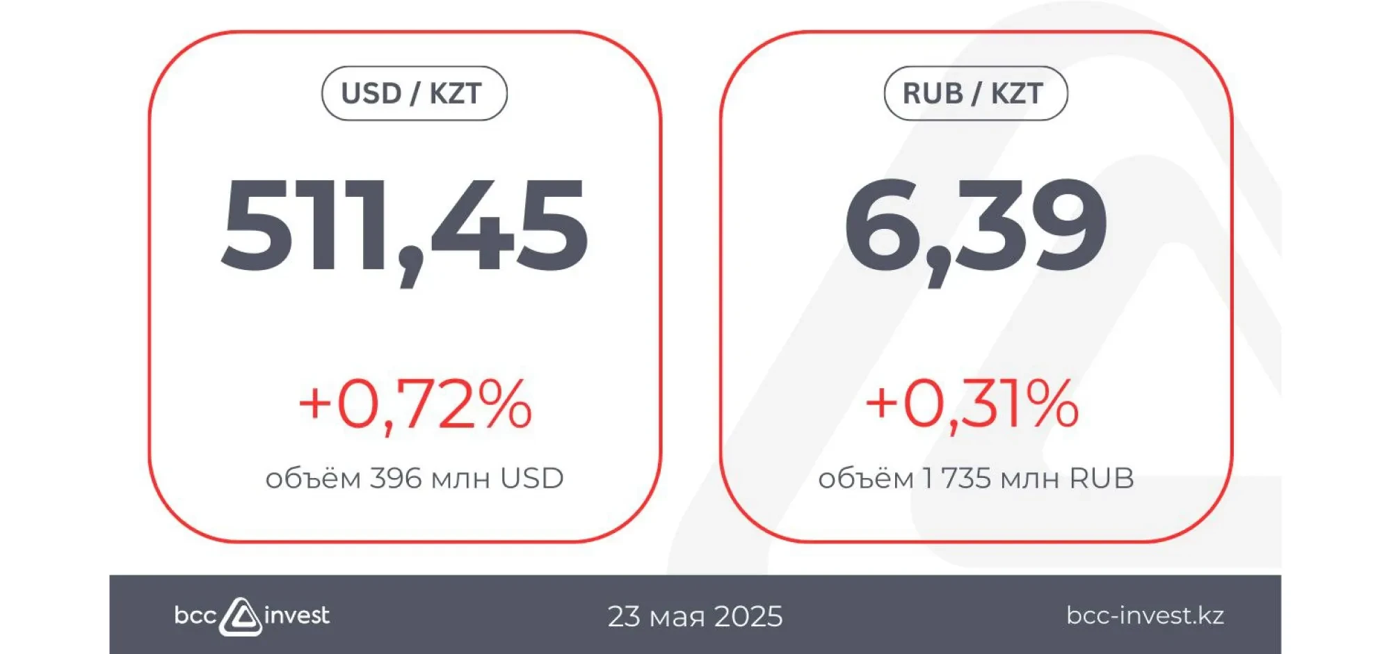Российский рубль также подорожал на 0,31%, достигнув отметки 6,39 тенге за рубль при объёме 1 735 млн RUB.