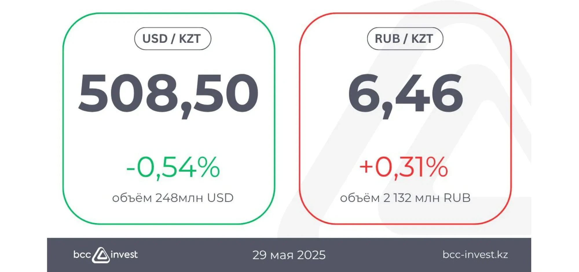 Курс тенге заметно укрепился по отношению к доллару США, снизившись до 508,50 на 0,54%. Объёмы торгов средние, 248 миллионов долларов.