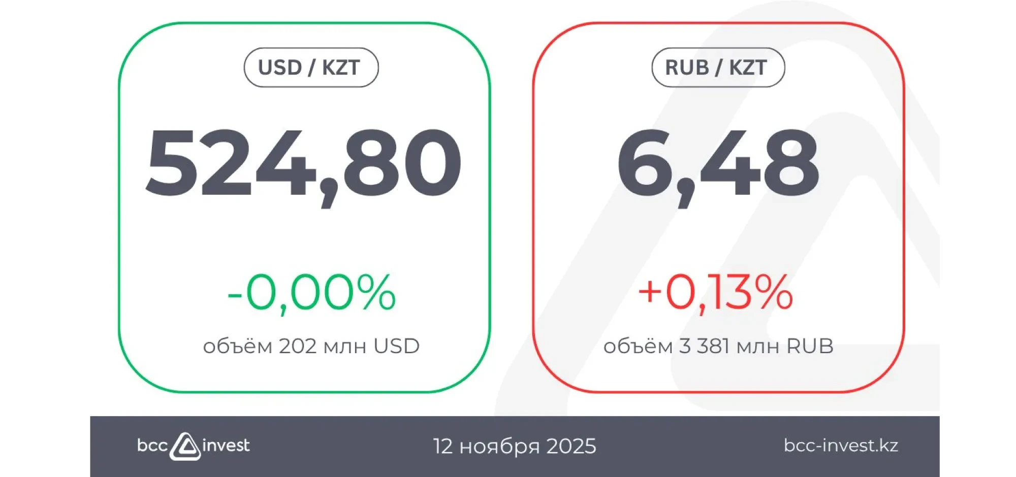 По отношению к рублю курс составил 6,48 ₸ (+0,13%), при этом объём торгов достиг 3 381 млн RUB.