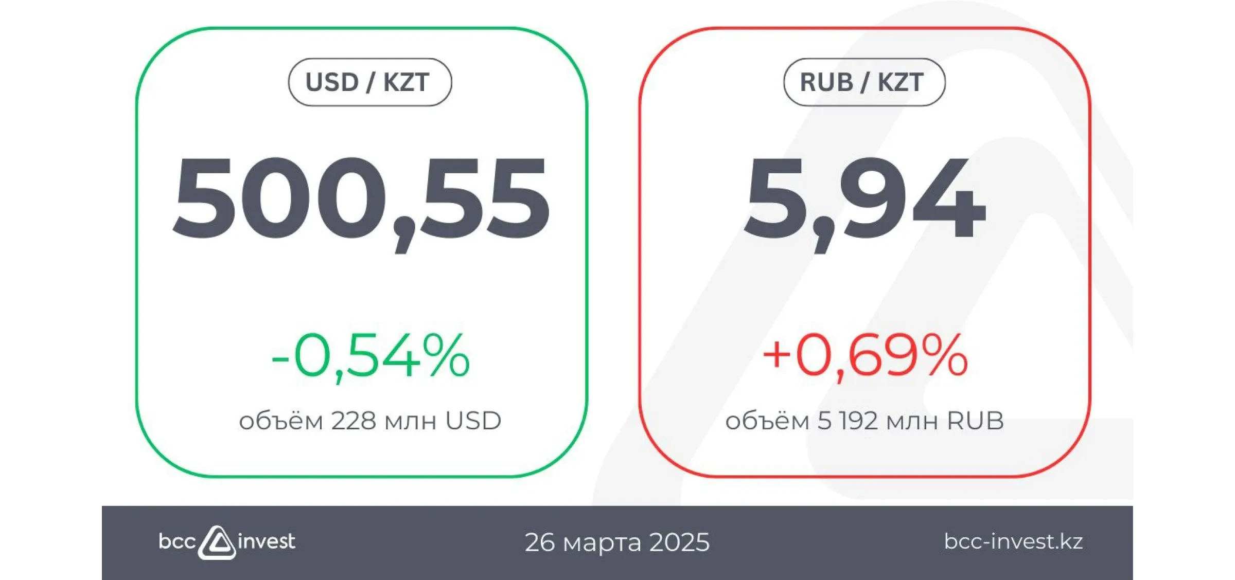 Тенге продемонстрировал умеренное укрепление после праздничных дней, опустившись до 500,55 за доллар (-0,54%). Объемы торгов средние, они составили 228 млн USD.