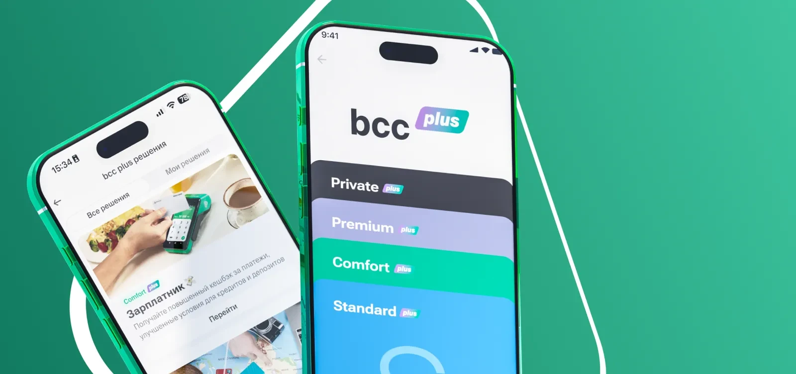 bcc plus аясында қосымша арнайы шешімдер де қолжетімді, бұл – нақты мақсаттар мен өмір салтына арналған дайын тиімді ұсыныстар жиынтығы. Сіз базалық шешімді таңдай аласыз немесе өз сценарийіңізге сәйкес нұсқаны пайдалана аласыз: «Жалақы» шешімі табысын Банк картасына алатындарға арналған, «Демалыс» саяхат пен әуе сапарына, «Денсаулық» медициналық шығынға арналған. Жақын уақытта үй кеңістігін жабдықтауға арналған «Үй және жайлылық», күтім мен осы санатта сауда жасауға арналған «Сұлулық», белсенді өмір салтына арналған «Спорт» және көлік шығынына арналған «Авто» сияқты жаңа шешімдер іске қосылады. Мұндай шешімдер маңызды шығынға назар аударуға және қажетті санаттарда барынша пайда табуға көмектеседі.