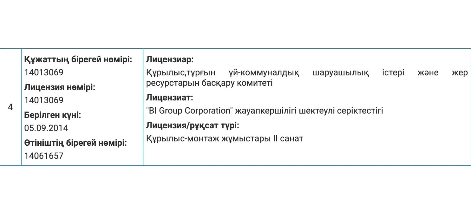 Компанияның БСН-ін (бизнес сәйкестендіру нөмірін) интернеттен табу өте оңай, «BI GROUP БСН» деп іздеу жеткілікті.