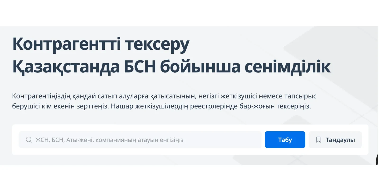 Компанияның БСН-ін жоғарыдағы скриншоттағыдай сәйкес жолға енгізіңіз. Содан кейін «Іздеу» батырмасын басыңыз.