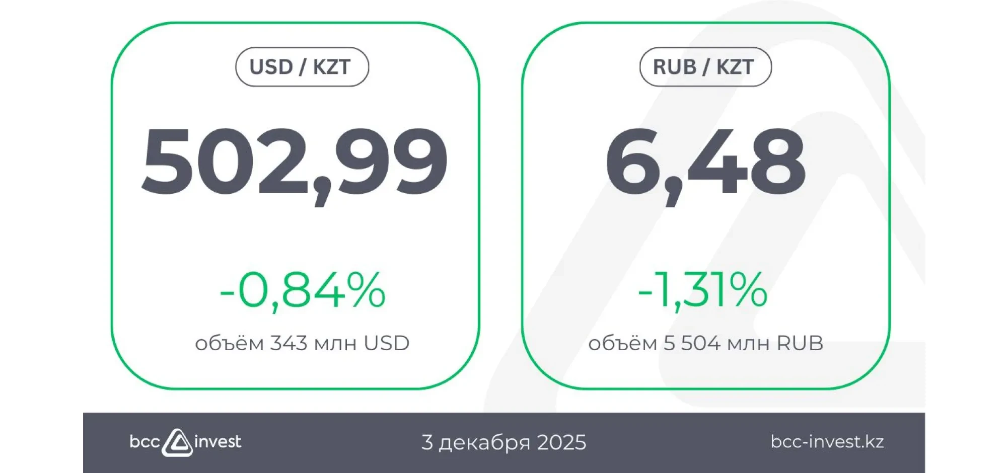 Бүгінгі сауда қорытындысы бойынша теңге нығаюын жалғастырып, сессияны доллар үшін 502,99 ₸ (-0,84%) деңгейінде аяқтады, операциялар көлемі 343 млн USD болды.
