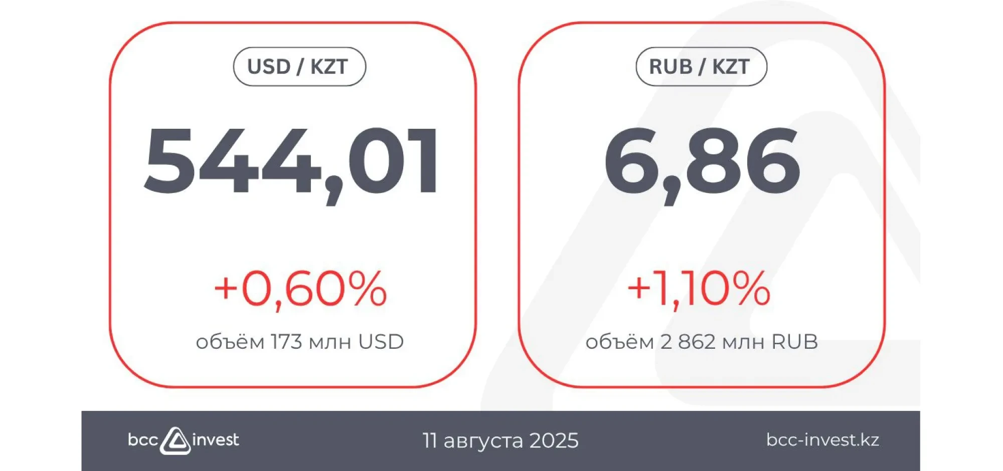 BCC Invest валюта бағамына арналған 2025 жылғы 11 тамызға аналитикасы