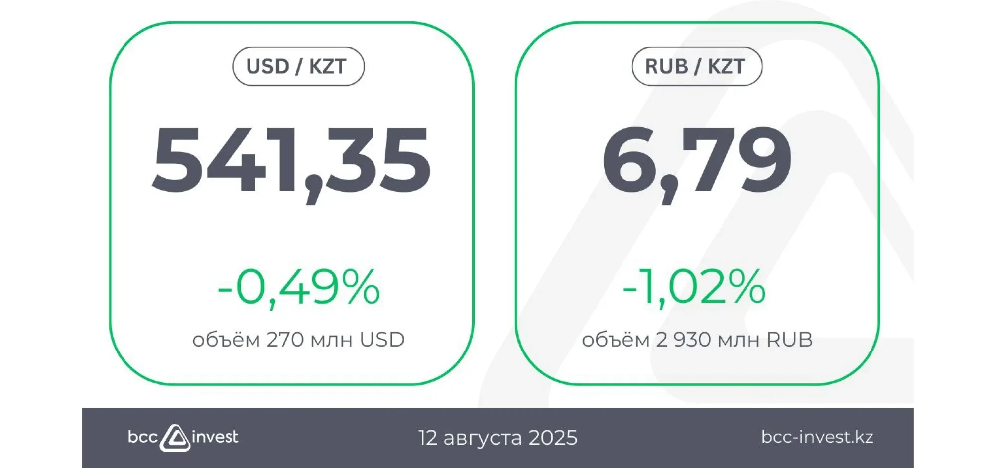 Доллардың курсы 0,49%-ға төмендеп, 541,35 теңгені құрады, сауда көлемі 270 миллион АҚШ доллары болды.