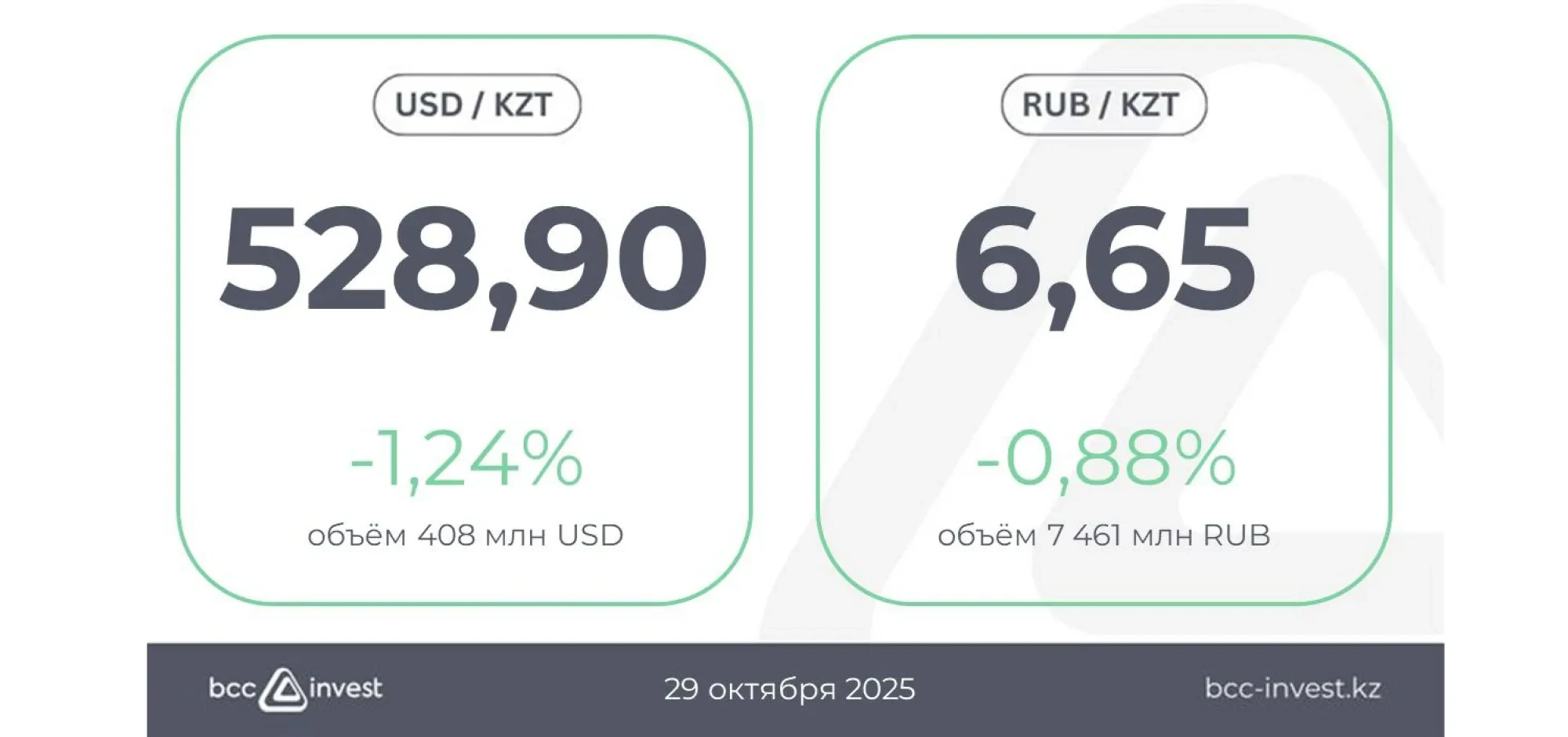 Бүгінгі сауда қорытындысы бойынша теңге АҚШ долларына қатысты нығайды. Сессия 528,90 ₸ деңгейінде аяқталды (−1,24%), сауда көлемі 408 млн USD болды.