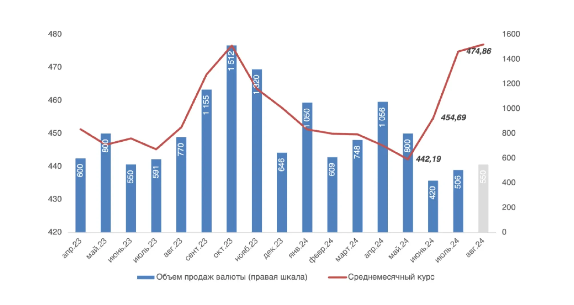 Теңге үшін үшінші тоқсан маусымдағы айтарлықтай әлсіреуден кейін бағамның біршама тұрақтануымен басталды. Нәтижесінде шілденің қорытындысы бойынша теңгенің орташа бағамы Ұлттық қордың валюта сату көлемі бойынша операциясының төмендеуі аясында 6,07%-ға әлсіреді. Шілде айының қорытындысы бойынша Ұлттық қордан республикалық бюджетке трансферттерді қамтамасыз ету үшін валюта сату 506 млн долларды және Қазатомпром акциясын сатып алу үшін валюта сату аясында шамамен 984 млн долларды құрады. Тамыз айында Үкіметтің болжамды өтінімдеріне сәйкес Ұлттық қор ұқсас деңгейде 500-600 млн мөлшерінде валюта сатады. Бұл операциялар біздің пікірімізше бағамды шамадан тыс әлсіреуден қолдайды. Бұған дейін атап өткендей, бір доллар үшін 480 теңге деңгейі нарық қатысушылары үшін американдық валютаны сату үшін тартымды болып табылады.