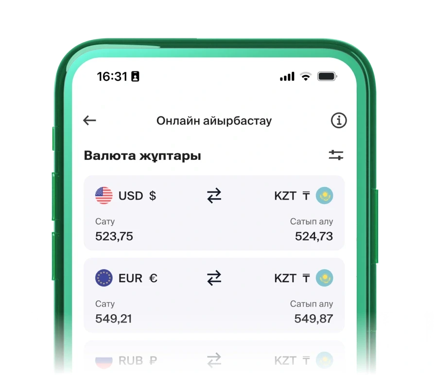 [{"currencyPairId":14,"currencySell":"USD","currencyBuy":"KZT","currencyMain":"USD","currencyMinor":"KZT","currencyName":"\u0410\u049a\u0428 \u0434\u043e\u043b\u043b\u0430\u0440\u044b","pictureUrlMain":"api\/v1\/fx\/images\/flags\/usd.png","pictureUrlMinor":"api\/v1\/fx\/images\/flags\/kzt.png","sell":492.44,"buy":494.06,"lastUpdateDateTime":"19.02.2026 19:11:01","currencyMainName":"USD","currencyMinorName":"KZT","stopTomLossSell":556.51,"stopTomLossBuy":429.92,"stopSpotLossSell":556.57,"stopSpotLossBuy":430.01,"maxAmount":1000000,"minAmount":1,"ricRound":2,"amountRound":2,"functionalType":"ON_THR","currencyMainSymbol":"$","currencyMinorSymbol":"\u20b8","sellNet":492.64,"buyNet":493.86,"orderQtyRound":2,"quoteOriginalNetRound":2,"isAvailable24x5":null,"isAvailableUntil":null,"availableUntilTime":null},{"currencyPairId":15,"currencySell":"EUR","currencyBuy":"KZT","currencyMain":"EUR","currencyMinor":"KZT","currencyName":"\u0415\u0443\u0440\u043e","pictureUrlMain":"api\/v1\/fx\/images\/flags\/eur.png","pictureUrlMinor":"api\/v1\/fx\/images\/flags\/kzt.png","sell":578.77,"buy":580.71,"lastUpdateDateTime":"19.02.2026 19:11:01","currencyMainName":"EUR","currencyMinorName":"KZT","stopTomLossSell":654.12,"stopTomLossBuy":505.3,"stopSpotLossSell":654.24,"stopSpotLossBuy":505.39,"maxAmount":900000,"minAmount":1,"ricRound":2,"amountRound":2,"functionalType":"ON_THR","currencyMainSymbol":"\u20ac","currencyMinorSymbol":"\u20b8","sellNet":578.92,"buyNet":580.56,"orderQtyRound":2,"quoteOriginalNetRound":2,"isAvailable24x5":null,"isAvailableUntil":null,"availableUntilTime":null},{"currencyPairId":16,"currencySell":"RUB","currencyBuy":"KZT","currencyMain":"RUB","currencyMinor":"KZT","currencyName":"\u0420\u0443\u0431\u043b\u044c","pictureUrlMain":"api\/v1\/fx\/images\/flags\/rub.png","pictureUrlMinor":"api\/v1\/fx\/images\/flags\/kzt.png","sell":6.4,"buy":6.4668,"lastUpdateDateTime":"19.02.2026 19:11:01","currencyMainName":"RUB","currencyMinorName":"KZT","stopTomLossSell":7.2309,"stopTomLossBuy":5.627,"stopSpotLossSell":7.2297,"stopSpotLossBuy":5.6279,"maxAmount":80000000,"minAmount":1,"ricRound":4,"amountRound":2,"functionalType":"ON_THR","currencyMainSymbol":"\u20bd","currencyMinorSymbol":"\u20b8","sellNet":6.42,"buyNet":6.4418,"orderQtyRound":2,"quoteOriginalNetRound":4,"isAvailable24x5":null,"isAvailableUntil":null,"availableUntilTime":null},{"currencyPairId":17,"currencySell":"GBP","currencyBuy":"KZT","currencyMain":"GBP","currencyMinor":"KZT","currencyName":"\u0424\u0443\u043d\u0442 \u0441\u0442\u0435\u0440\u043b\u0438\u043d\u0433\u0456","pictureUrlMain":"api\/v1\/fx\/images\/flags\/gbp.png","pictureUrlMinor":"api\/v1\/fx\/images\/flags\/kzt.png","sell":662.24,"buy":664.48,"lastUpdateDateTime":"19.02.2026 19:11:01","currencyMainName":"GBP","currencyMinorName":"KZT","stopTomLossSell":748.44,"stopTomLossBuy":578.18,"stopSpotLossSell":748.56,"stopSpotLossBuy":578.27,"maxAmount":700000,"minAmount":1,"ricRound":2,"amountRound":2,"functionalType":"ON_THR","currencyMainSymbol":"\u00a3","currencyMinorSymbol":"\u20b8","sellNet":662.39,"buyNet":664.33,"orderQtyRound":2,"quoteOriginalNetRound":2,"isAvailable24x5":null,"isAvailableUntil":null,"availableUntilTime":null},{"currencyPairId":18,"currencySell":"EUR","currencyBuy":"USD","currencyMain":"EUR","currencyMinor":"USD","currencyName":"\u0415\u0443\u0440\u043e","pictureUrlMain":"api\/v1\/fx\/images\/flags\/eur.png","pictureUrlMinor":"api\/v1\/fx\/images\/flags\/usd.png","sell":1.17466,"buy":1.17602,"lastUpdateDateTime":"19.02.2026 19:11:01","currencyMainName":"EUR","currencyMinorName":"USD","stopTomLossSell":null,"stopTomLossBuy":null,"stopSpotLossSell":null,"stopSpotLossBuy":null,"maxAmount":900000,"minAmount":1,"ricRound":5,"amountRound":2,"functionalType":"ON_THR","currencyMainSymbol":"\u20ac","currencyMinorSymbol":"$","sellNet":1.17516,"buyNet":1.17552,"orderQtyRound":2,"quoteOriginalNetRound":5,"isAvailable24x5":null,"isAvailableUntil":null,"availableUntilTime":null},{"currencyPairId":19,"currencySell":"USD","currencyBuy":"RUB","currencyMain":"USD","currencyMinor":"RUB","currencyName":"\u0410\u049a\u0428 \u0434\u043e\u043b\u043b\u0430\u0440\u044b","pictureUrlMain":"api\/v1\/fx\/images\/flags\/usd.png","pictureUrlMinor":"api\/v1\/fx\/images\/flags\/rub.png","sell":76.3576,"buy":77.0479,"lastUpdateDateTime":"19.02.2026 19:11:01","currencyMainName":"USD","currencyMinorName":"RUB","stopTomLossSell":null,"stopTomLossBuy":null,"stopSpotLossSell":null,"stopSpotLossBuy":null,"maxAmount":1000000,"minAmount":1,"ricRound":4,"amountRound":2,"functionalType":"ON_THR","currencyMainSymbol":"$","currencyMinorSymbol":"\u20bd","sellNet":76.5576,"buyNet":76.8479,"orderQtyRound":2,"quoteOriginalNetRound":4,"isAvailable24x5":null,"isAvailableUntil":null,"availableUntilTime":null},{"currencyPairId":20,"currencySell":"GBP","currencyBuy":"USD","currencyMain":"GBP","currencyMinor":"USD","currencyName":"\u0424\u0443\u043d\u0442 \u0441\u0442\u0435\u0440\u043b\u0438\u043d\u0433\u0456","pictureUrlMain":"api\/v1\/fx\/images\/flags\/gbp.png","pictureUrlMinor":"api\/v1\/fx\/images\/flags\/usd.png","sell":1.34416,"buy":1.34558,"lastUpdateDateTime":"19.02.2026 19:11:01","currencyMainName":"GBP","currencyMinorName":"USD","stopTomLossSell":null,"stopTomLossBuy":null,"stopSpotLossSell":null,"stopSpotLossBuy":null,"maxAmount":700000,"minAmount":1,"ricRound":5,"amountRound":2,"functionalType":"ON_THR","currencyMainSymbol":"\u00a3","currencyMinorSymbol":"$","sellNet":1.34466,"buyNet":1.34508,"orderQtyRound":2,"quoteOriginalNetRound":5,"isAvailable24x5":null,"isAvailableUntil":null,"availableUntilTime":null},{"currencyPairId":21,"currencySell":"XAU","currencyBuy":"KZT","currencyMain":"XAU","currencyMinor":"KZT","currencyName":"\u0410\u043b\u0442\u044b\u043d","pictureUrlMain":"api\/v1\/fx\/images\/flags\/xau.png","pictureUrlMinor":"api\/v1\/fx\/images\/flags\/kzt.png","sell":78531.56,"buy":79329.59,"lastUpdateDateTime":"19.02.2026 19:11:01","currencyMainName":"GOLD","currencyMinorName":"KZT","