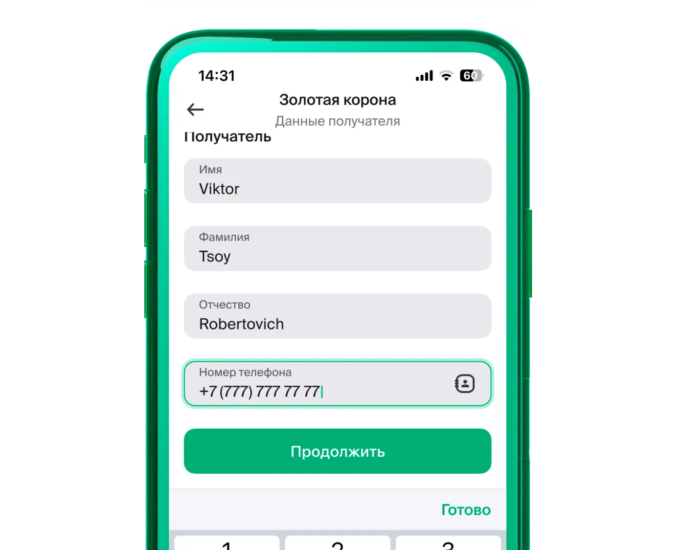 «Золотая Корона– ақша аударымдары» сервисі туралы қосымша ақпарат www.koronapay.com сайтында немесе тәулік бойы қолдау қызметін көрсететін + 7 (495) 96-00-555 телефоны бойынша (қоңыраулар байланыс операторының ережелеріне сәйкес тарифтеледі).