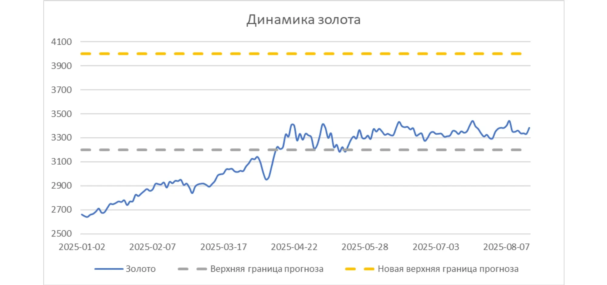 Алтын бұрын көрсетілген траекторияға жетті. Жыл басында алтын бағасының 3 000-3 200 АҚШ доллары деңгейіне өсуі, ал жартыжылдық қорытынды бойынша аздаған түзетуден кейін бағамның бір унция үшін 3 500 АҚШ доллары деңгейіне оралуы болжанған еді – қазір нарық 3 600 АҚШ долларына жетті. Егер мемлекеттік институттар мен инвесторлар тарапынан капитал ағымы, орталық банктің жұмсақ риторикасы және жоғары геосаяси белгісіздік үйлесімі сақталса, жыл соңына қарай алтын бағасы бір унция үшін шамамен 4 000 АҚШ долларына жетеді деп болжанып отыр.