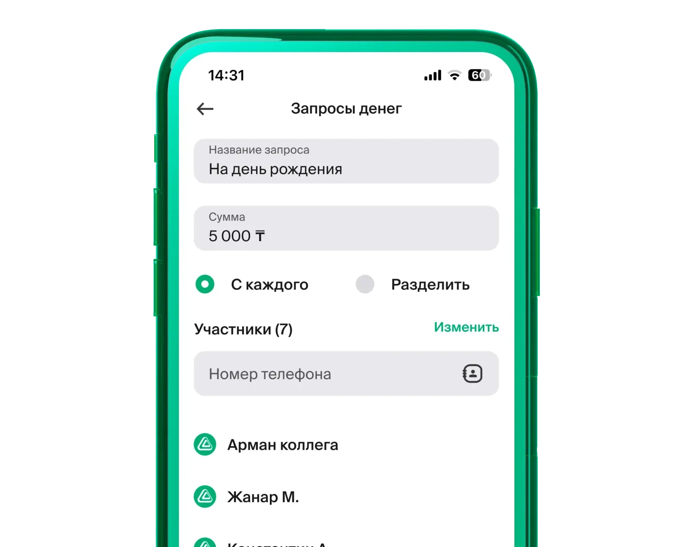 Создавайте сборы всего за минуту, отправив запрос денег другим участникам