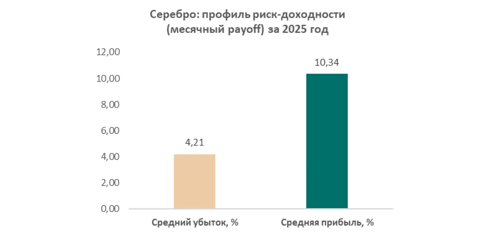 Таким образом, серебро остаётся более рискованным и волатильным активом, чем золото: оно способно резко усиливать рост портфеля в фазе ралли, но столь же быстро корректироваться при смене настроений.