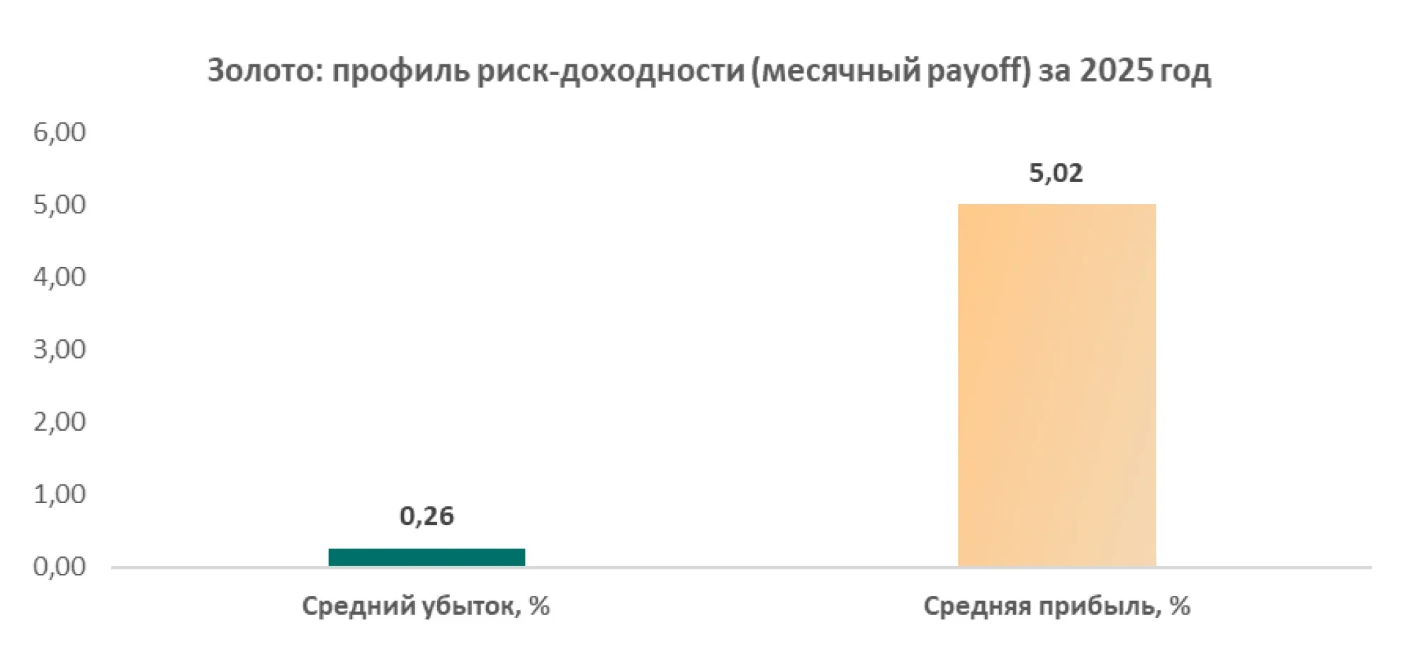 Отдельно следует подчеркнуть роль золота в портфелях в условиях волатильности, которая остаётся актуальной при любом сценарии. Золото зарекомендовало себя как эффективный диверсификатор: его корреляция с рисковыми активами (акциями, высокодоходными облигациями) обычно отрицательна в периоды кризисов, что помогает сглаживать просадки портфеля. 2025 год стал наглядным примером - включение золота принесло значительный положительный эффект для сбалансированных портфелей, компенсируя слабость облигаций и повышенную волатильность акций.